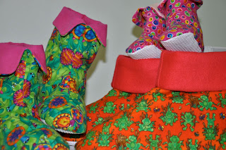 The bag design is kind of my own although I think I must have been influenced by one I saw in a book by Tone Finnager. Anyway I had a couple of these round handles and had been wondering what to do with them for a long time and I thought they would be perfect for this bag. There is something very sumptuous about velvet. It drapes sooooo well and has a degree of sophisication about it no other fabric has - which is very funny considering I allocated one of them to be a knitting bag! (My knitting is not sophisicated I can tell you!) No seriously, I think they are lovely bags and would make perfect gifts for someone. Which is why I have put them in my shop!
